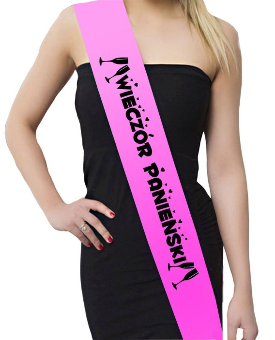 Szarfa satynowa na wieczór panieński z napisem WIECZÓR PANIEŃSKI.